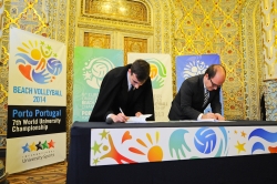 On December 6th was formalized a partnership between the organizing committee and the city council of Porto.The chairman of Porto Academic Federation (FAP), Rúben Alves, as chairman of the organizing committee of the 9th European University Beach Volleyball Championship, and Vladimiro Feliz, Vice Mayor of Porto and chairman of the board of directors of Porto Lazer company, take a formal partnership in organizing the international event with the aim of creating the best conditions for the holding of the championship.